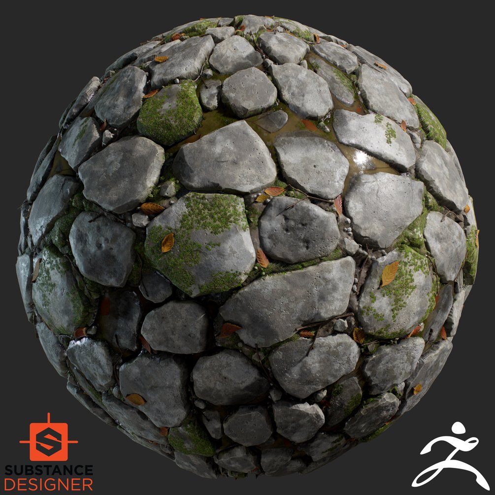Cobble Ground material created in Zbrush and Substance Designer.